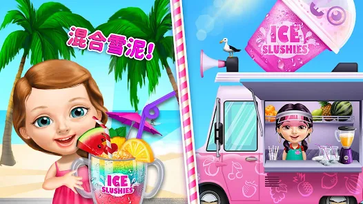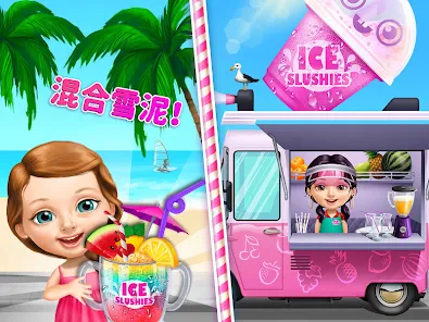 成为大厨吧炙烤美味热狗制作甜美冰激凌和混合冰凉的彩虹沙滩派对雪泥