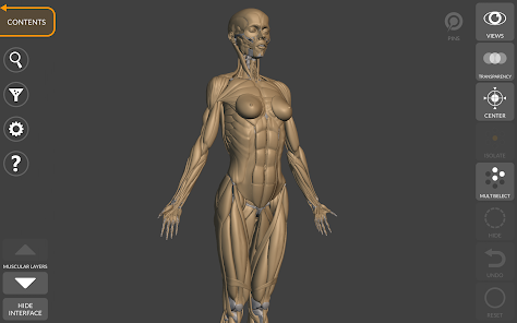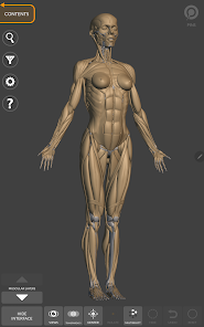 這個應用程序允許藝術家通過高度詳細的 3D 解剖模型顯示骨骼和肌肉系統。每個骨骼和肌肉的形狀都將清晰易懂。