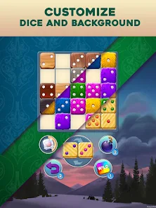 將可定制的骰子塊如木骰子、模糊骰子、餅乾骰子、金光骰子等拖放到拼圖板上並嘗試匹配除了可定制的骰子還有可定制的背景因此您可以個性化自己的遊戲體驗。