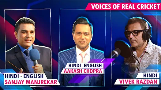 正如我們的名字 Real Cricket 一樣您現在可以體驗傳奇評論員 Sanjay Manjrekar、Aakash Chopra、Vivek Razdan 的現場評論