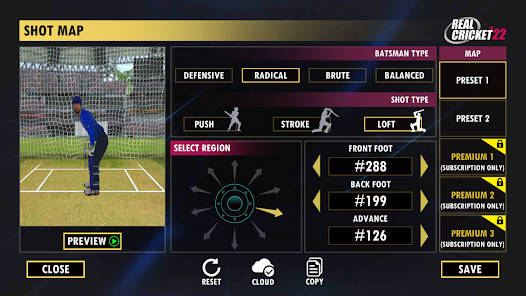 擊球地圖可讓您選擇所需的擊球從而創造出獨特的擊球風格。建立這些擊球的多個預設並根據比賽情況使用它們。不是這個您可以透過向好友發送您的預設代碼來與他們分享這些預設