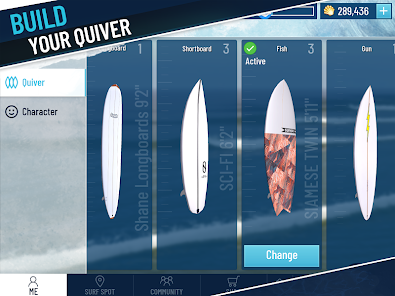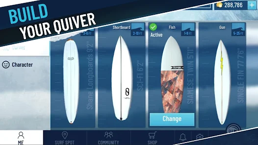 開始構建你的箭袋。根據波浪條件您將需要短板遊戲板長板槍支和魚以建立您的聲譽並成為衝浪的傳奇。隨著您職業生涯的進步您將解鎖購買的新電路板。