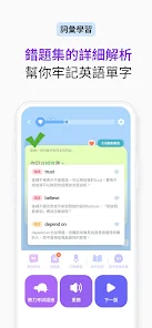 [單字學習]智慧推薦符合您程度的單字測驗口語模式幫您輕鬆掌握日常對話。