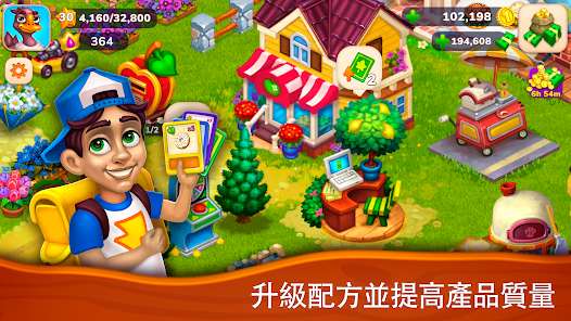 改進生產配方以提高產品質量。滿足市民們的訂購需求與你的鄰居們互動交換物品並交易農場出產的產品。
